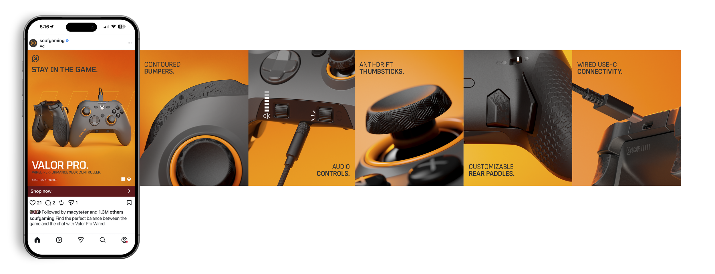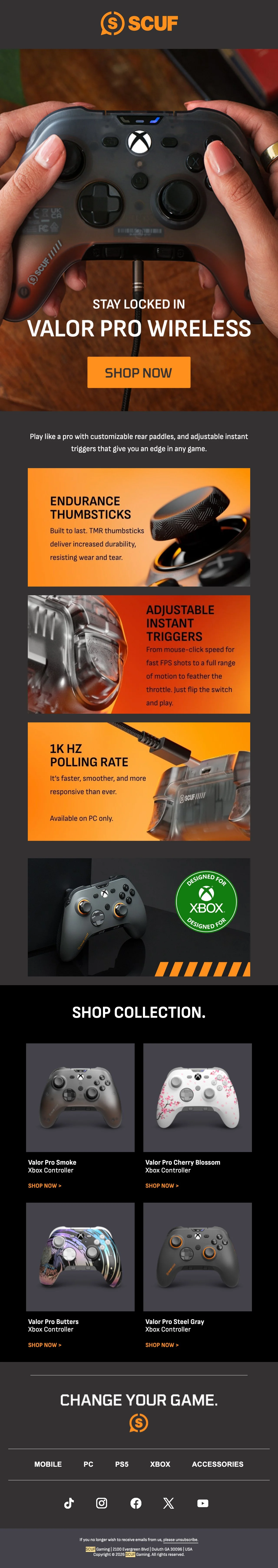 We launched SCUF Valor Pro in two waves. First the wired controller, followed by the much-anticipated wireless version of our latest Xbox design. With audio controls mounted directly onboard, players could instantly adjust their game and chat mix without putting their controller down, keeping them locked in when the moment matters.